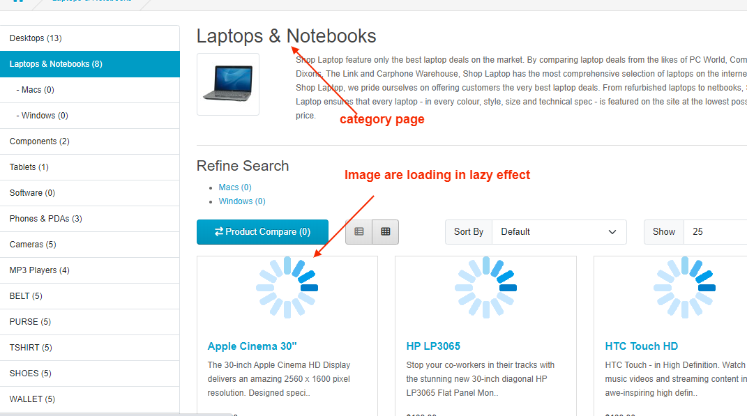 ✔ Category Page LazyLoad – show faster load with placeholder vs images loading gradually.