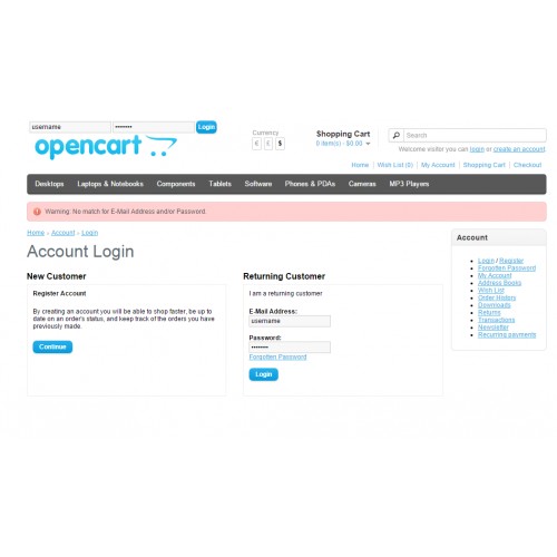 Login my OpenCart Account