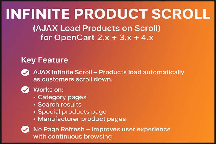 Infinite Product Scroll (AJAX Load Products on Scroll) for OpenCart 2.x + 3.x + 4.x