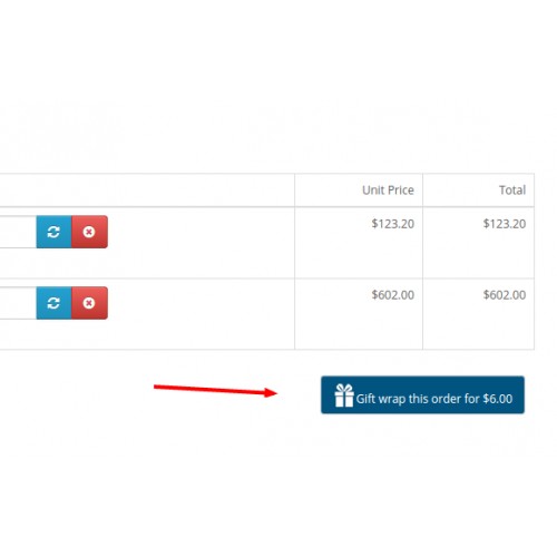 The extension provides both features to allow gift wrapping on individual products and also on complete order. You can also set up a price for gift wrapping that will come up in totals when gift wrapping is selected by the customer.