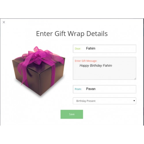 Customer can add fields like recipient name, gift message and sender name for gift wrapping, gift types