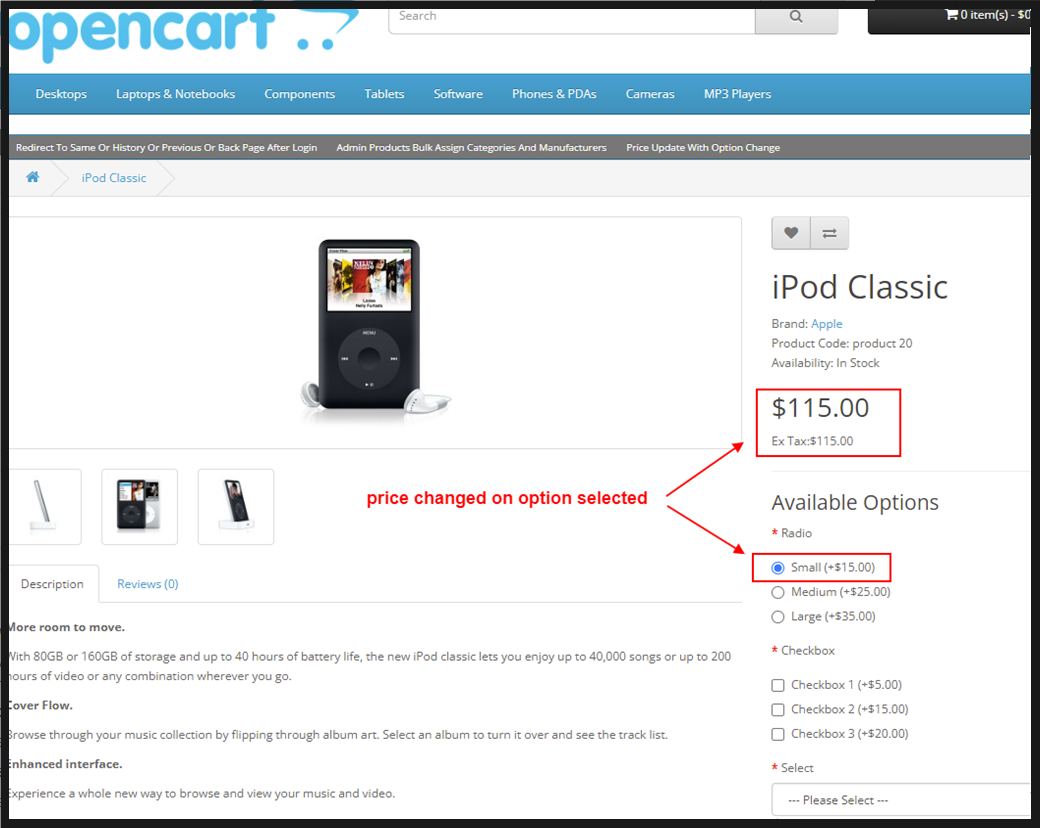 let customer know live price when option changed or selected. customer know the final price by selected option based
