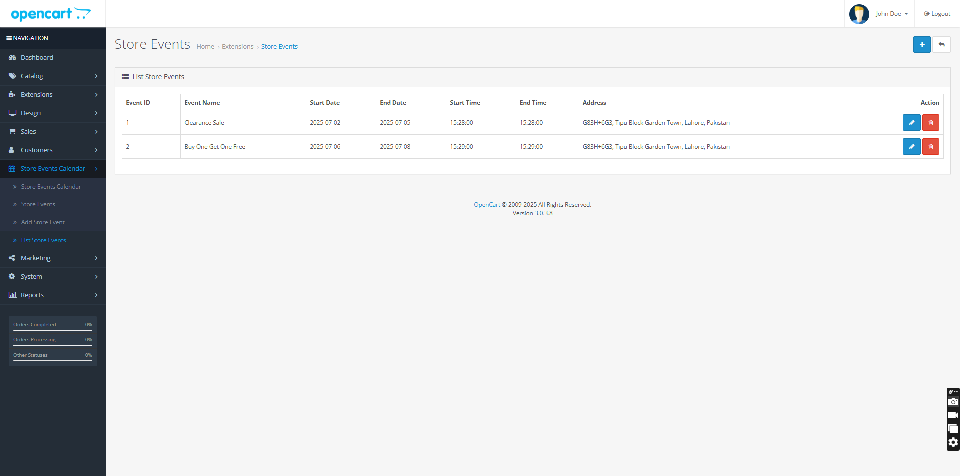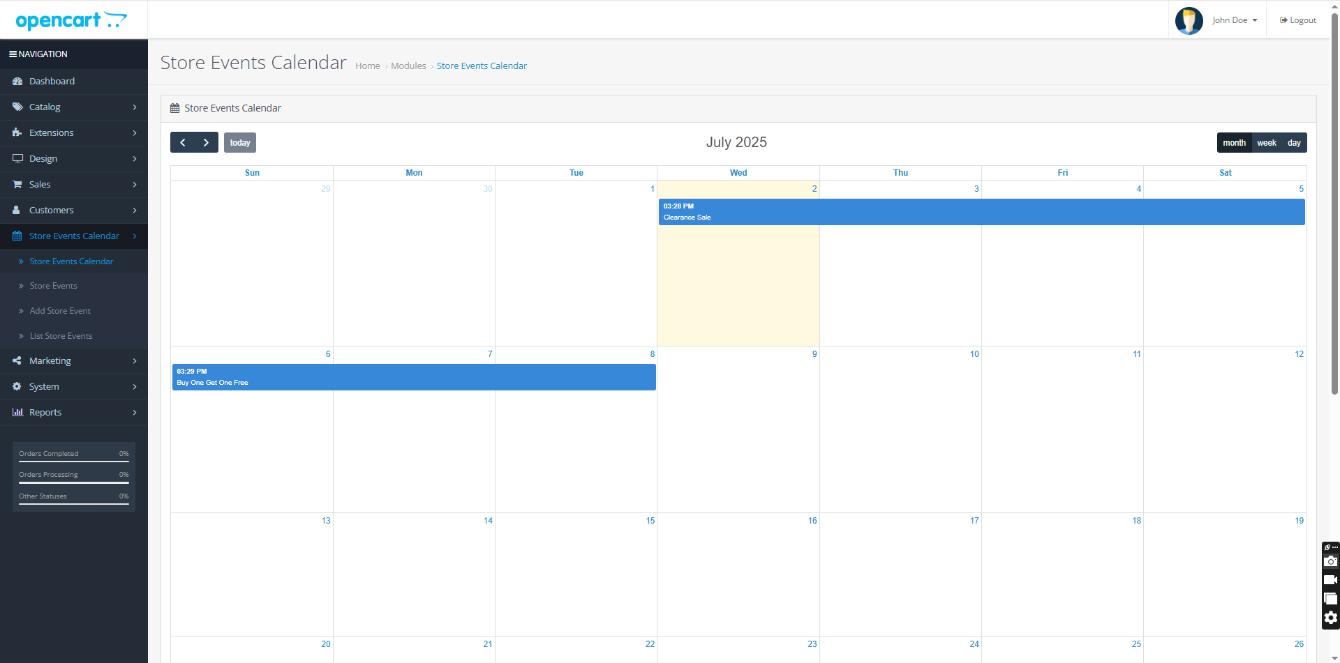 OpenCart Sales Events & Promotions Calendar