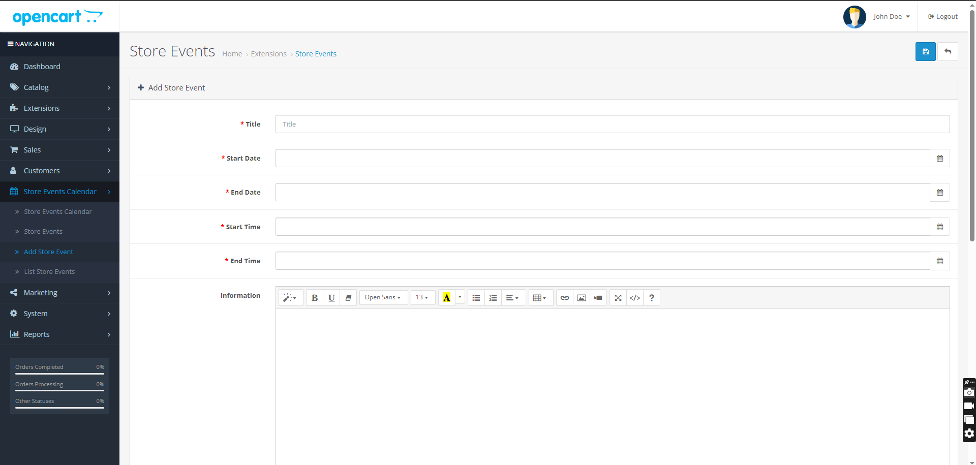 - Flexible Layout: Easily set the event calendar module on any layout throughout the site, just like any standard OpenCart module, providing flexibility in design and placement.