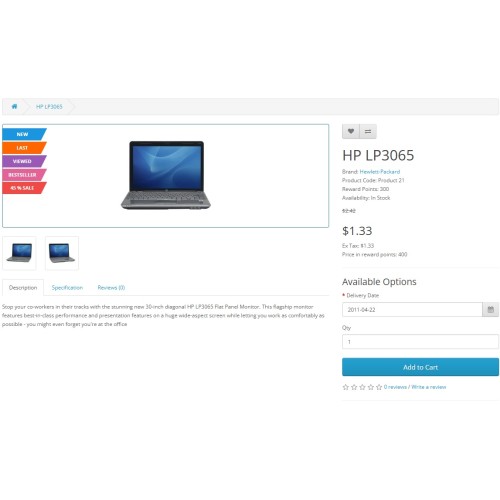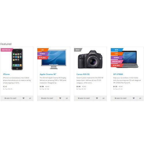 This extension automatically adds smart product stickers across your store: product pages, categories, manufacturer pages, specials, search results, and the Featured / Bestseller / Special / Latest modules.
