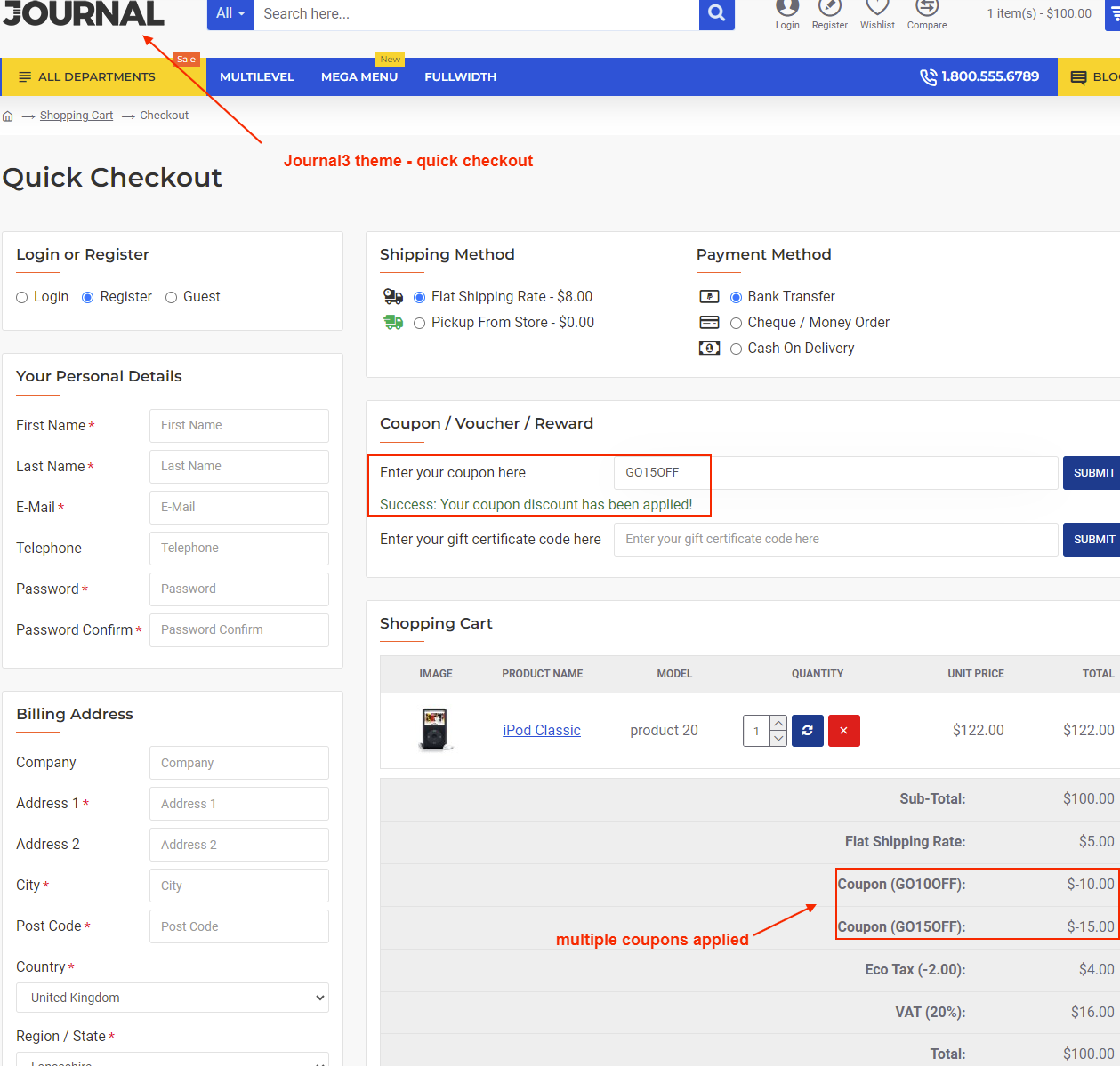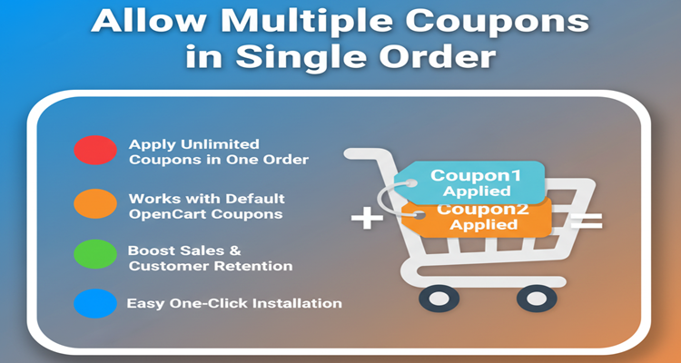 Allow Multiple Coupons in Single Order – OpenCart Extension 2.x + 3.x + 4.x