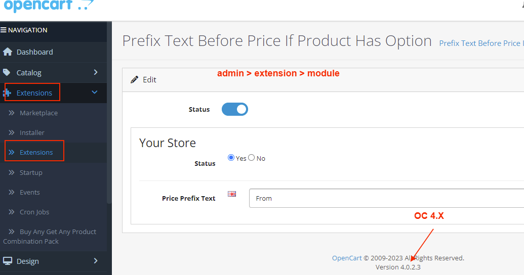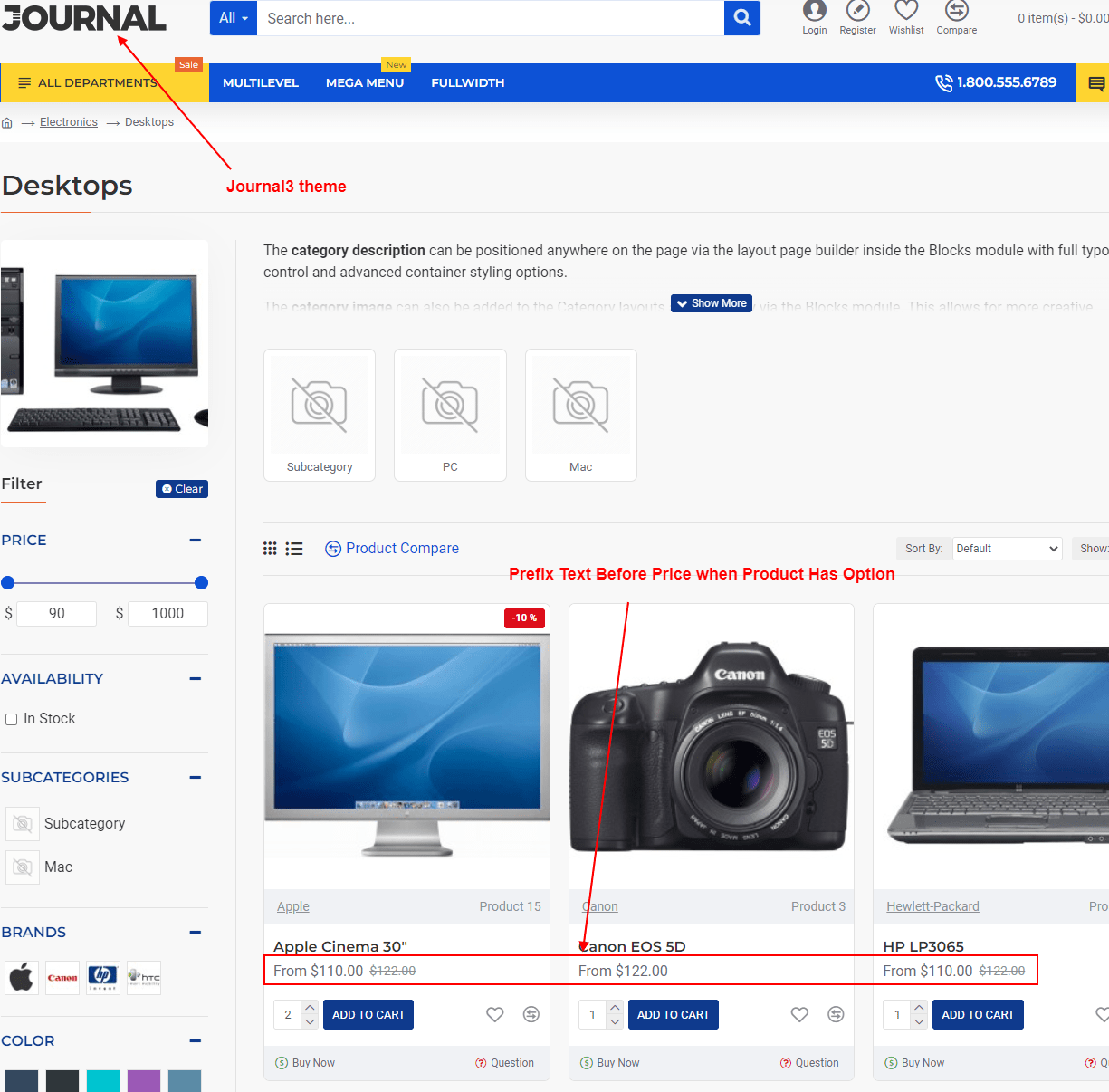 Prefix Text Before Price If Product Has Option for OpenCart 2.x + 3.x + 4.x