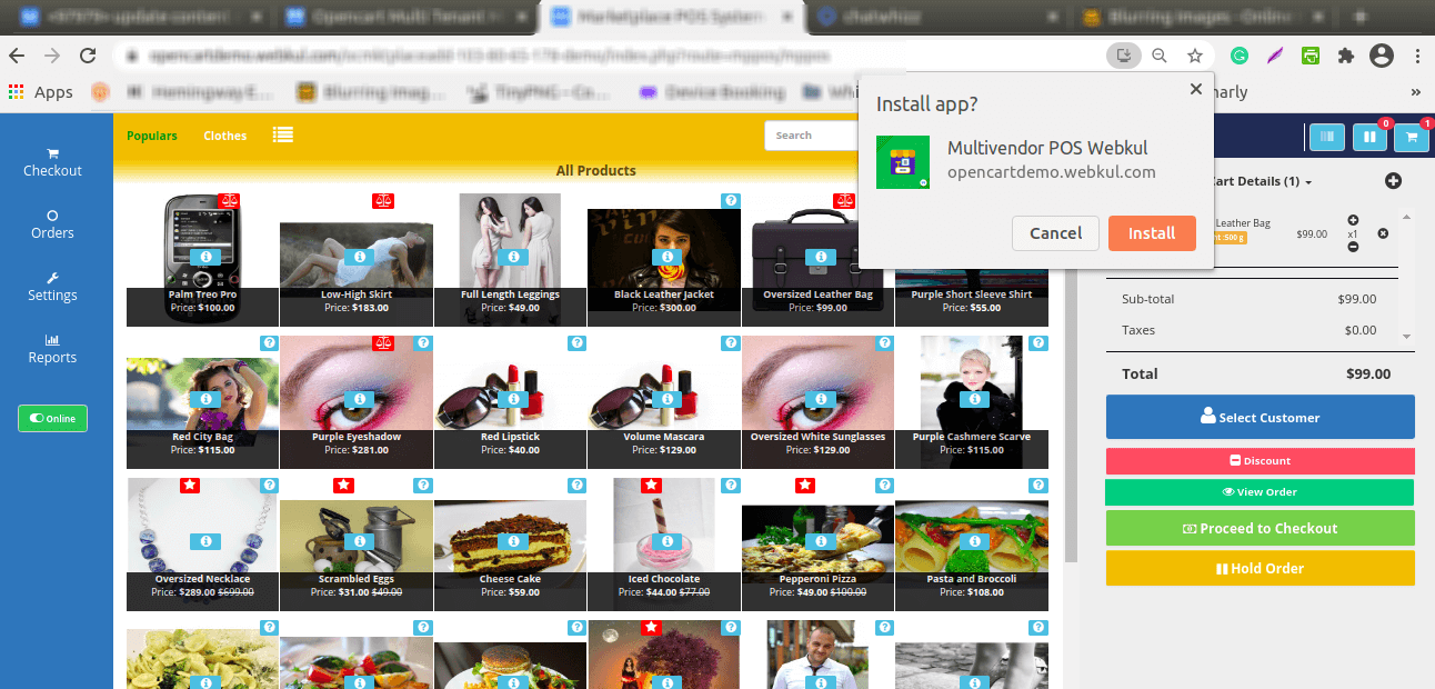 This module allows the sellers to have a POS outlet. The seller can enable products for POS and can decide the product's quantity which will be used in POS. The seller can handle orders and transactions via the POS panel. The seller can hold any order for the later processes to carry out or handle more urgent orders. when the customer adds the product into the cart, that price gets updated as per the weight defined for the product. When the customers select any product then the discount applied will depend upon the product weight.