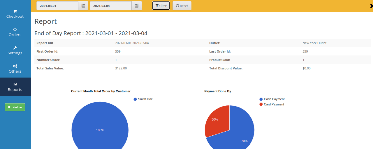 The POS panel can work on both online and offline mode for providing seamless functionality.
