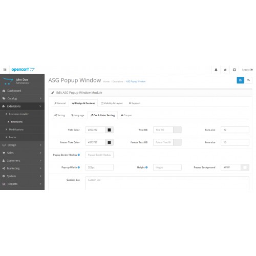 # Set Popup Title, Title Font-color, Bg-color, Font-size