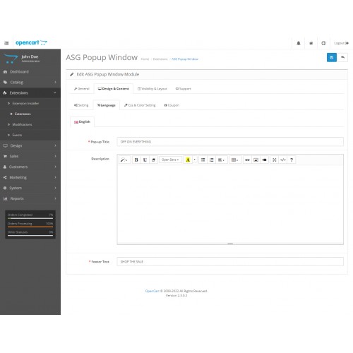 # Set Popup Footer Text & its, Font-color, Bg-color, Font-size