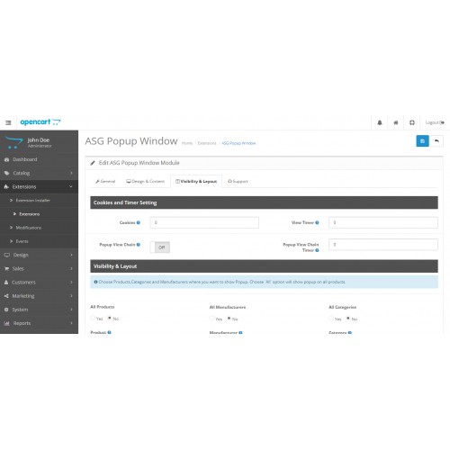 # Rich Popup visibilty Management. according to Guest, Layouts, Categories, Manfucaturers and Products.