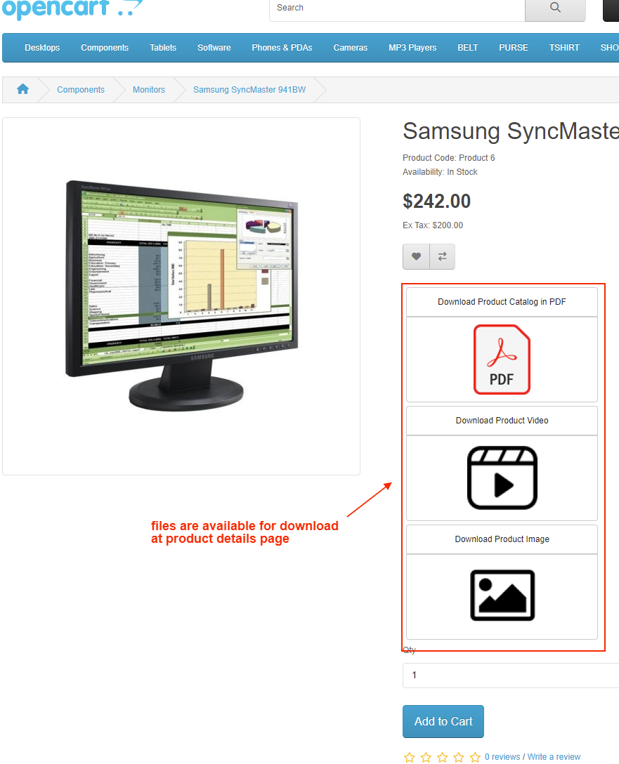 File Download at Product Page – OpenCart Module 2.x + 3.x + 4.x
