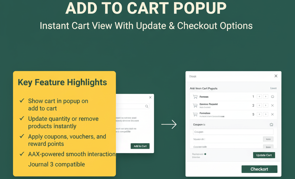 ✔ AJAX-powered add, remove, and quantity update for smooth interaction