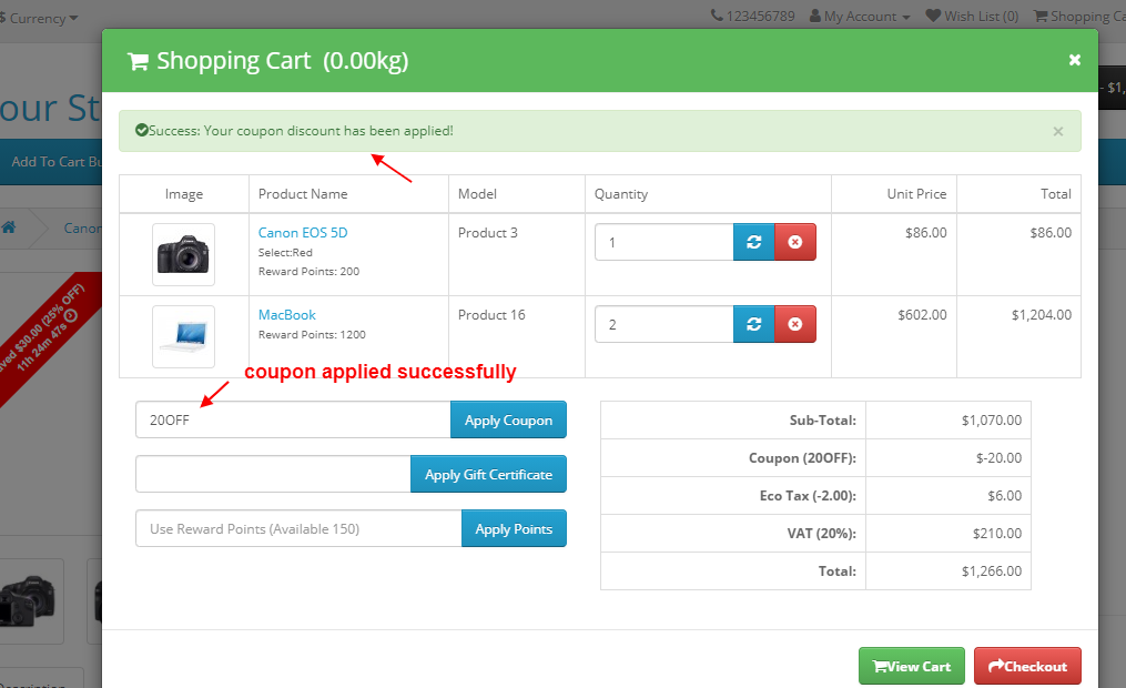 ✔ Apply coupon, voucher, and reward points in popup