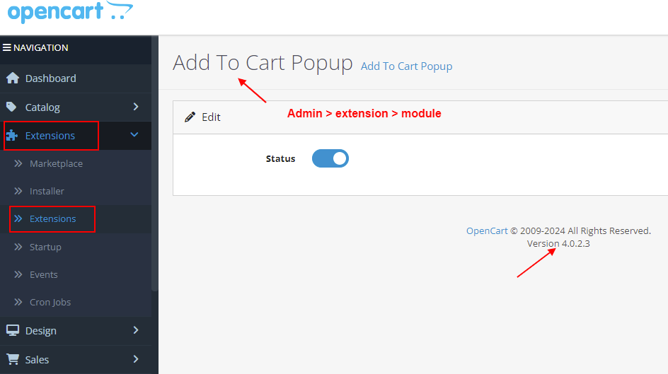 Admin:• Admin > Extension > Module