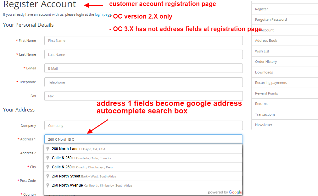 Google Address Autocomplete for OpenCart 2.x + 3.x + 4.x