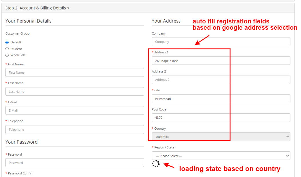 ✔ Auto-fills: Address 1, Address 2, Postcode, City, State/Zone, Country