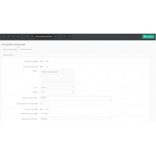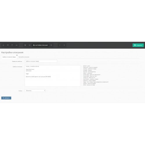 Using the description template, you can specify information about the product, such as: name, description, model, price, manufacturer, attributes, tags and a link to the product.
