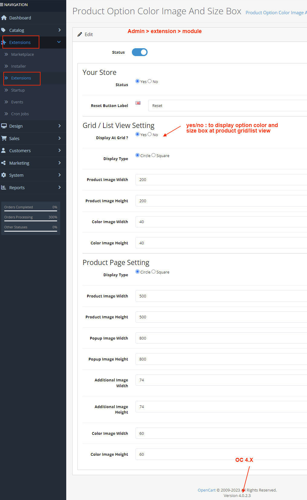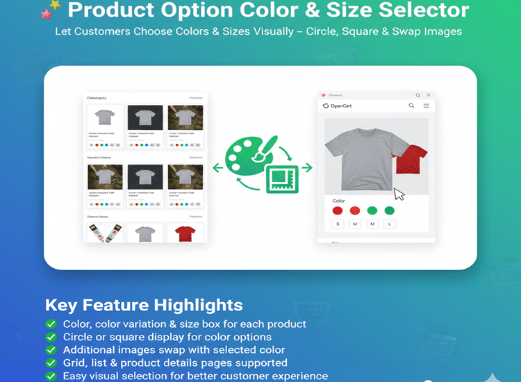 Product Option Color Image And Size Box for OpenCart 2.x + 3.x + 4.x