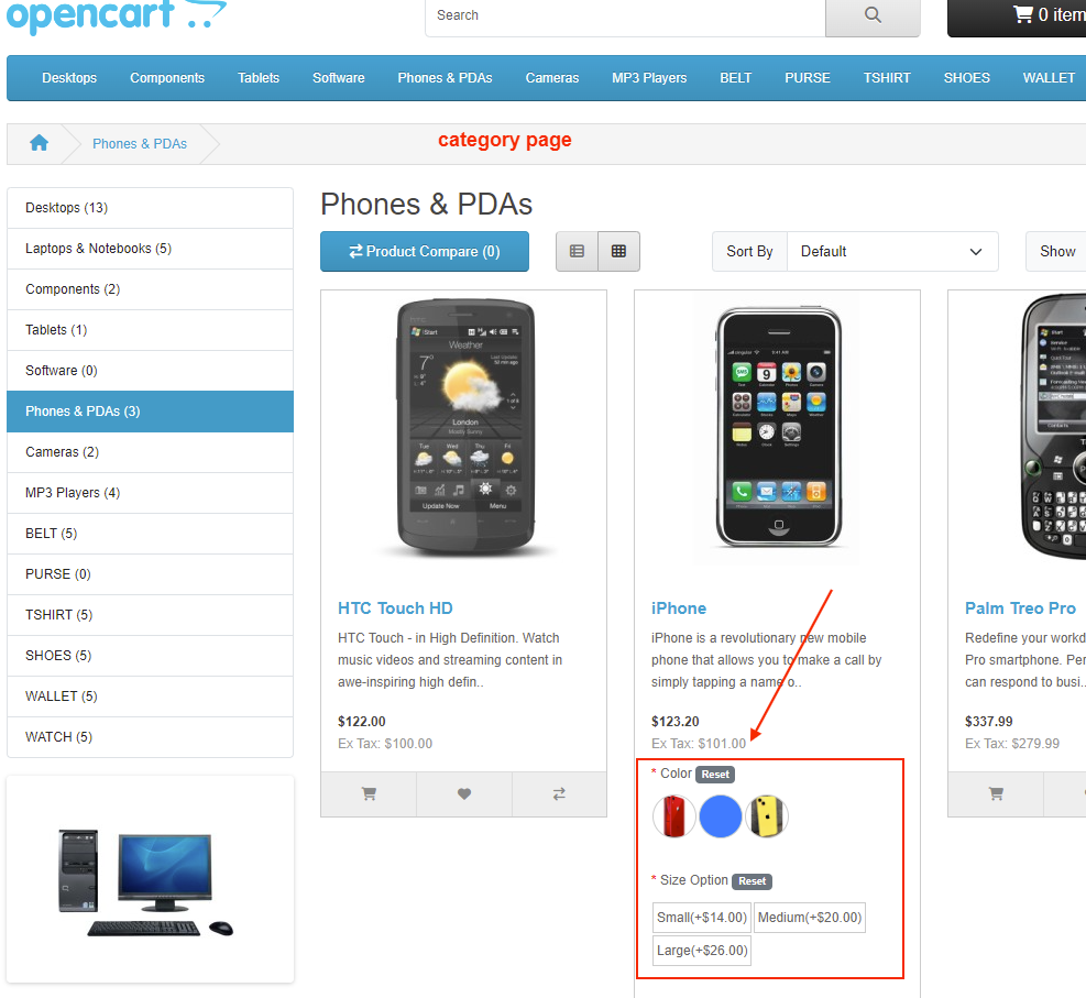 ✔ Product option color appears at home page grid, category, special, search, manufacturers product grid and product details page