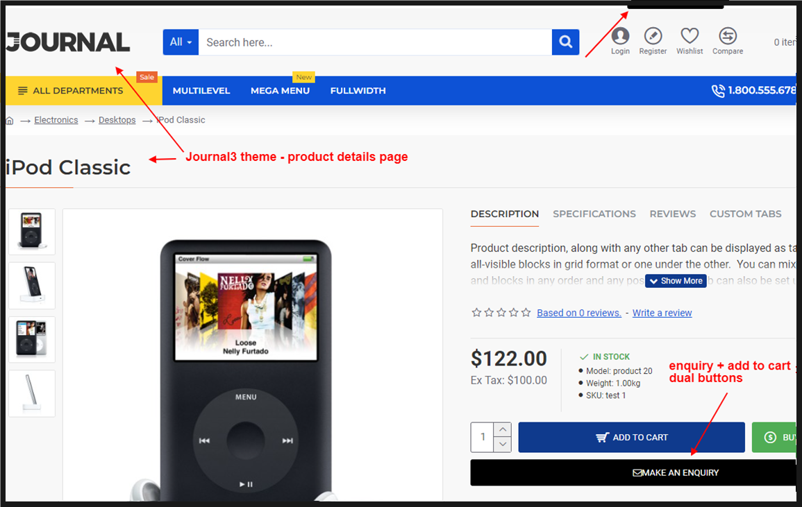 get products enquiry, request quote from your customers. dual cart feature like add to cart + add to enquiry. create unlimited custom fields for enquiry form. apply enquiry button on multiple selected products + all products of multiple selected categories & it's child categories + all products of multiple selected manufacturers products
