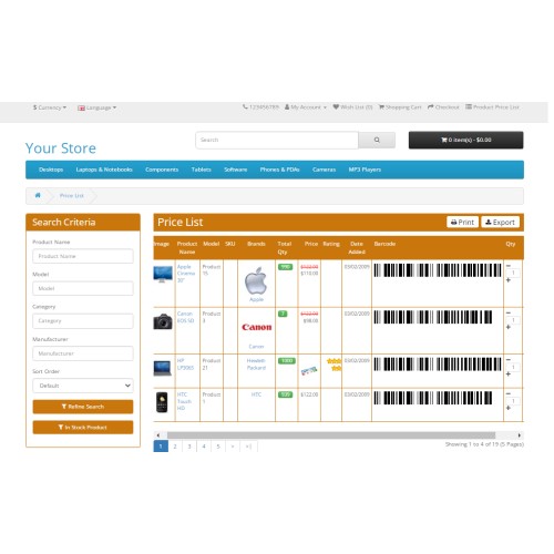 Admin can display product data in bar code from a product SKU. You can create SEO friendly url for price list link that is easy for access and SEO has to benefit for your store.