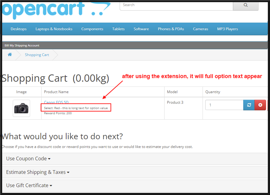 • Default in opencart, if product option value text is longer then 20 character then its looks like 'option value...'