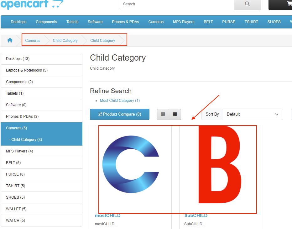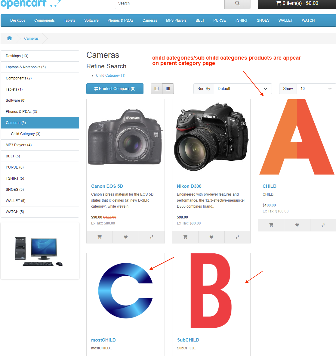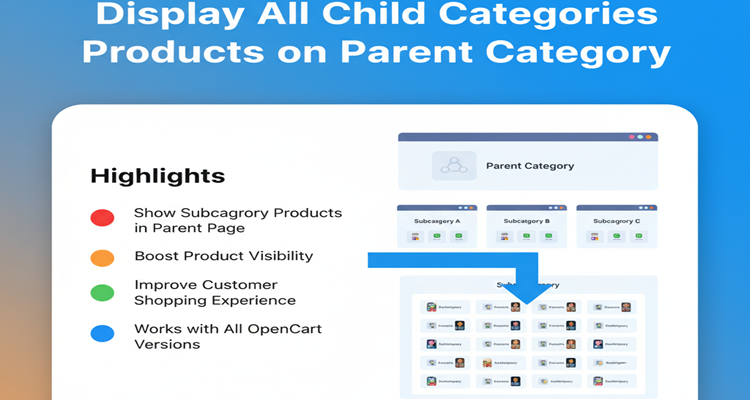 Display All Child Categories Products on Parent Category OpenCart 2.x + 3.x + 4.x
