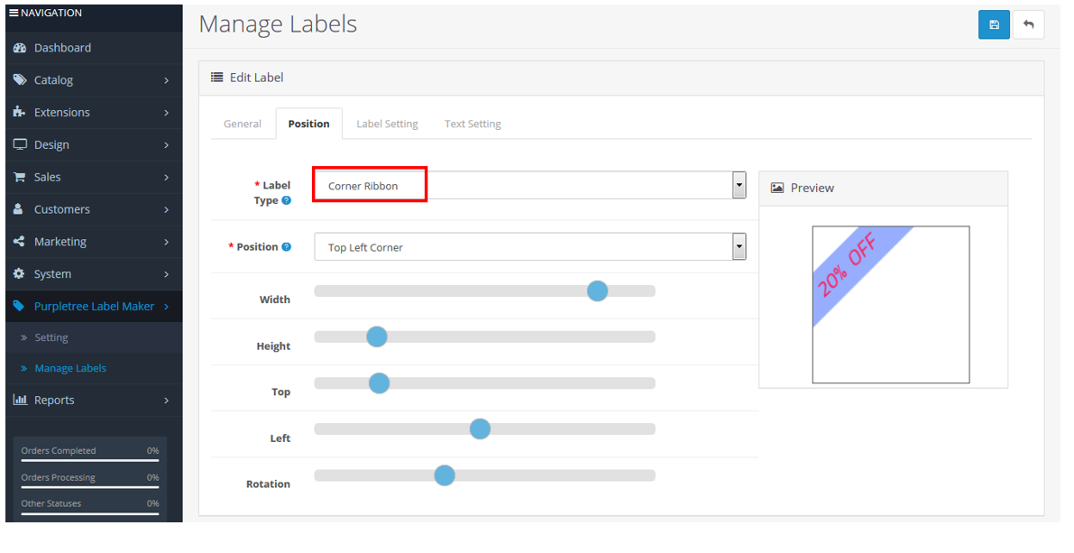 You can add labels like NEW, SALE, DISCOUNT, or EXCLUSIVE on your product images without editing them. It works with all OpenCart themes, even the Journal theme. Choose from badges or ribbons, place them at the location you want on the product image, and adjust size, shape, colors, and fonts. The interface is simple, so you can quickly create a professional look for your store.