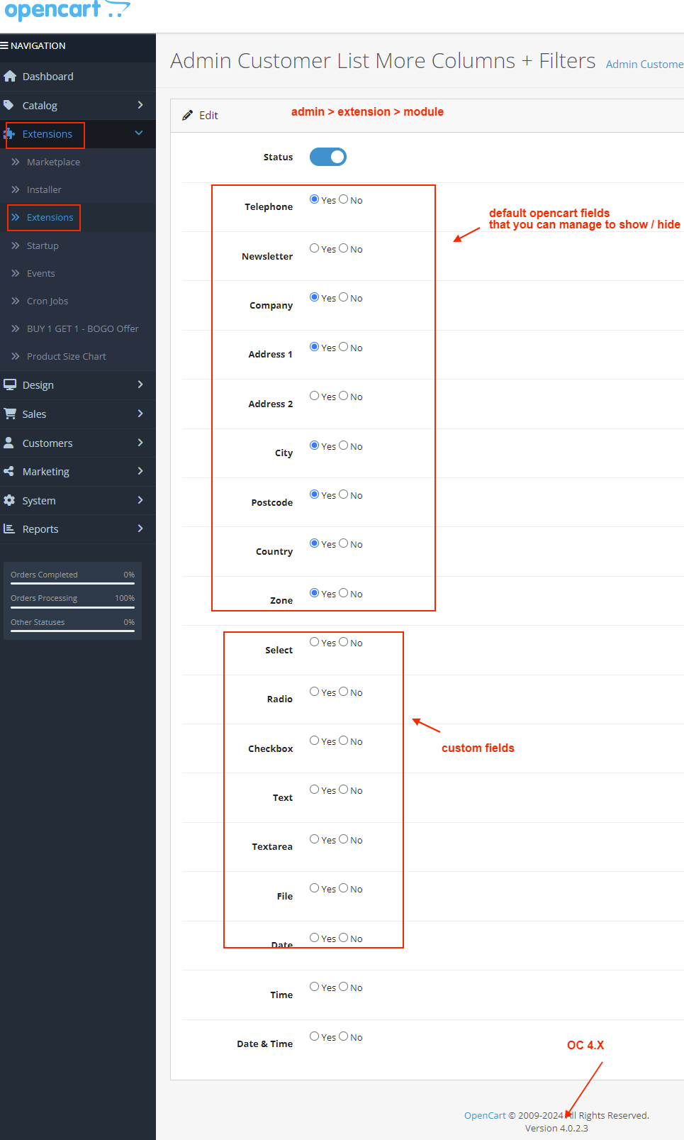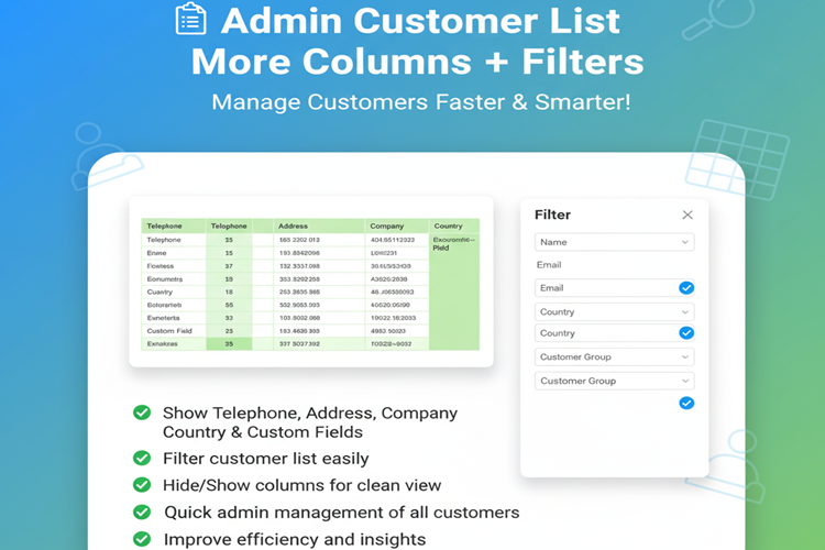 Admin Customer List More Columns + Filters for OpenCart 2.x + 3.x + 4.x