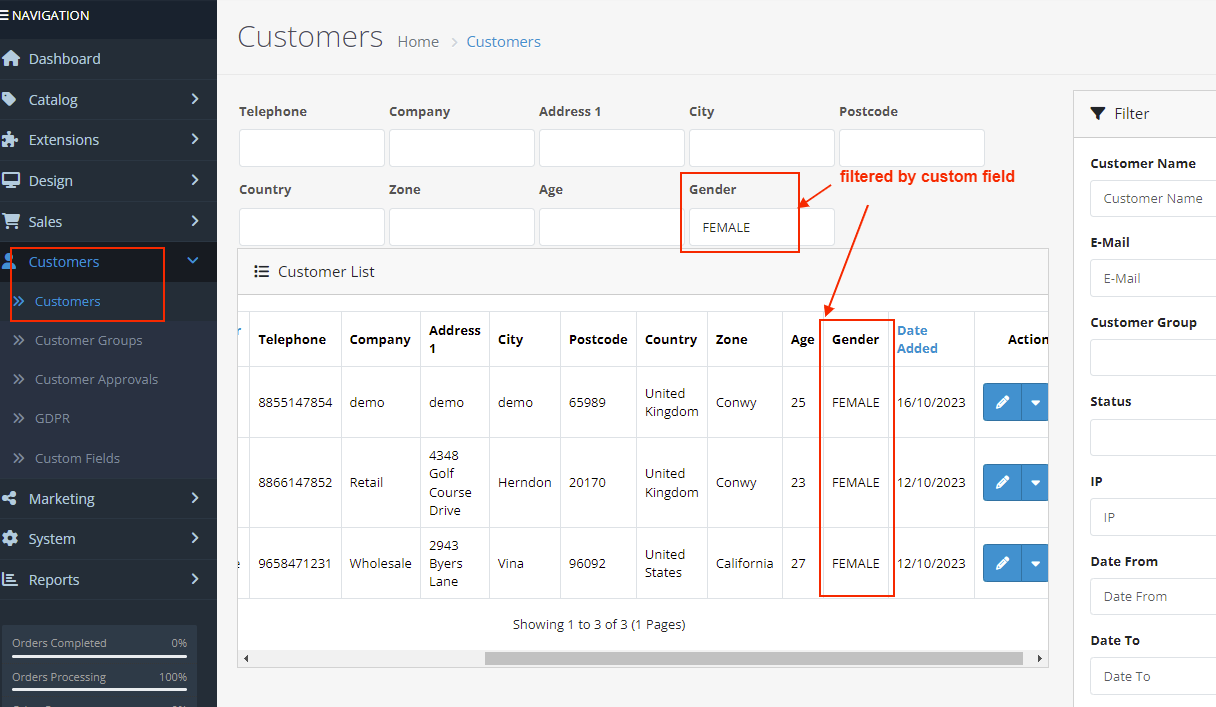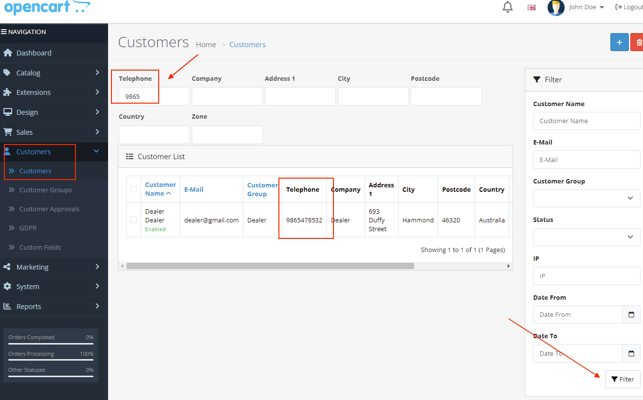 ✔ Fully compatible with default OpenCart customer list