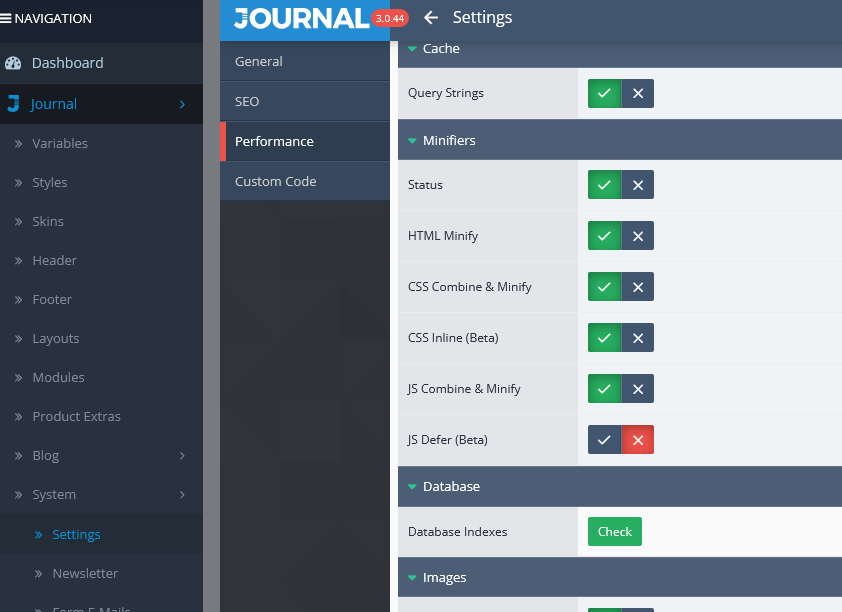 I have Opencart Version 3.0.3.2, and I have Journal 3.0.44 installed.