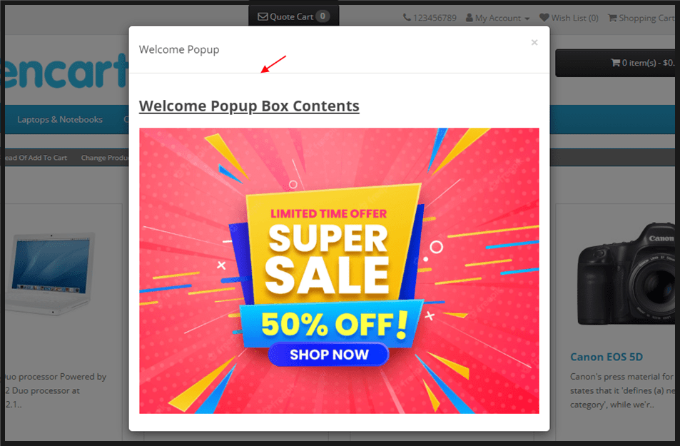 Admin > Extension > Welcome Popup Box