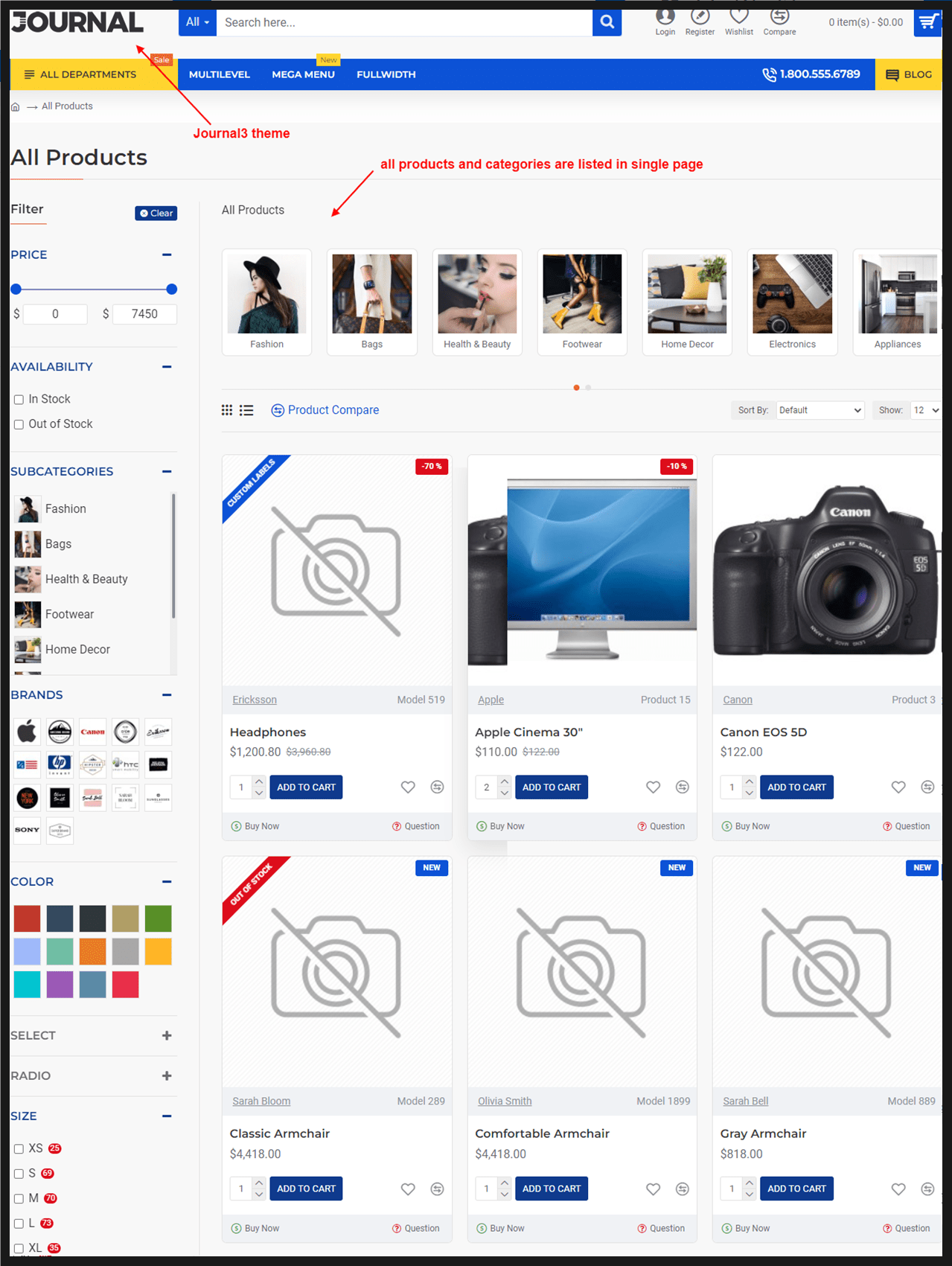 • that category page will display all products with pagination