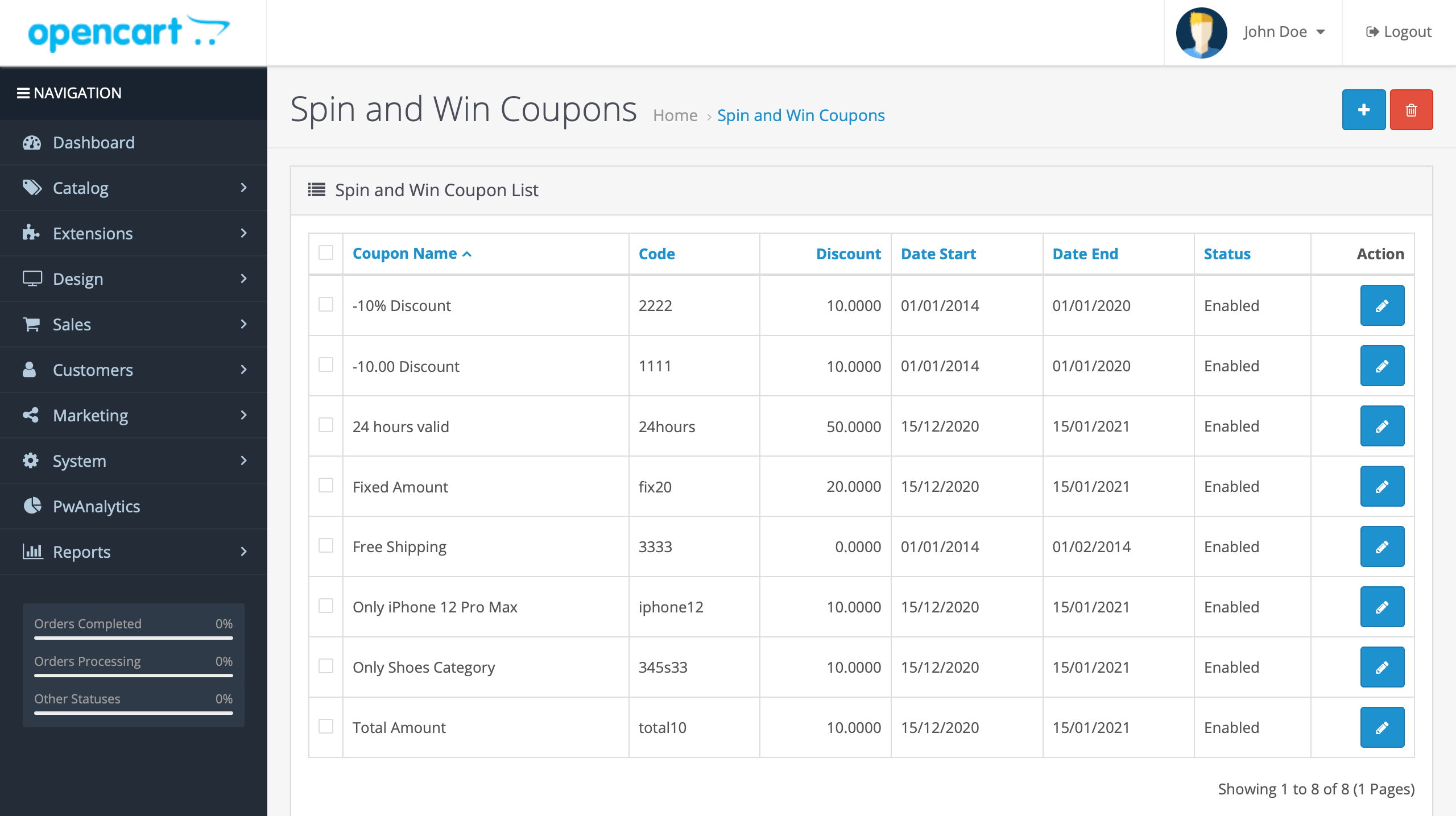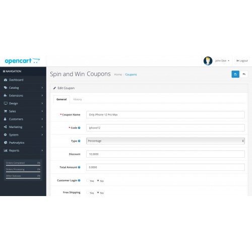 With the Opencart Spin and Win Module you can create specific category, specific product or total amount based campaigns and offer your customers a brand new and fun shopping experience.