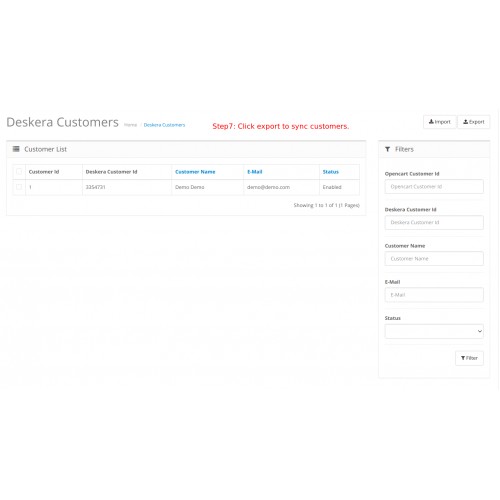 9. Admin may import the customers from Deskera to OpenCart.
