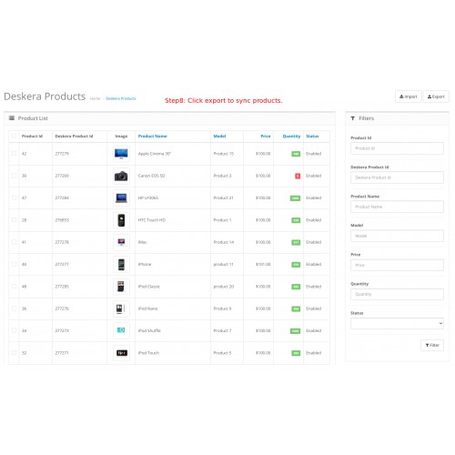 10. Admin may import the products from Deskera to OpenCart.