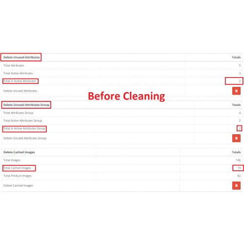 "OpenCart Cleaner Pro / Optimize OpenCart" is a must-have Extension that allows you to optimize your OpenCart Store. Your store may be full of garbage that makes your site sluggish and bloated. You should clean-up this unnecessary data to reduce your database size and improve store website speed and performance.