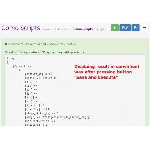Como Admin scripts provides tools to create, save and execute PHP scripts and commands conveniently in the administrative interface of the site. This is useful both for developers to test snippets of their modules and for users who have some knowledge of PHP or want to acquire it.