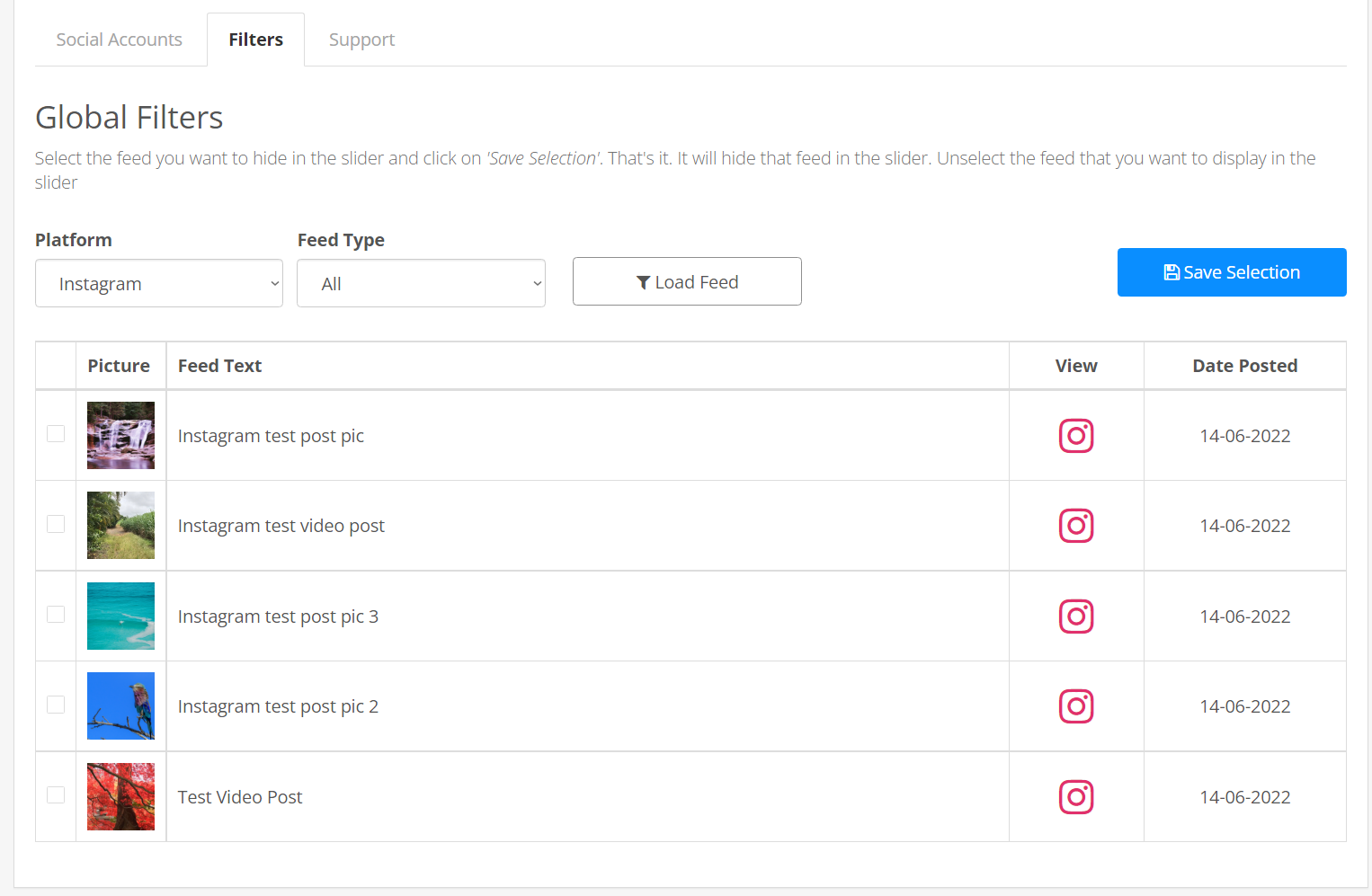 You can hide any post from your Instagram / Facebook account. So they don't display in slider.