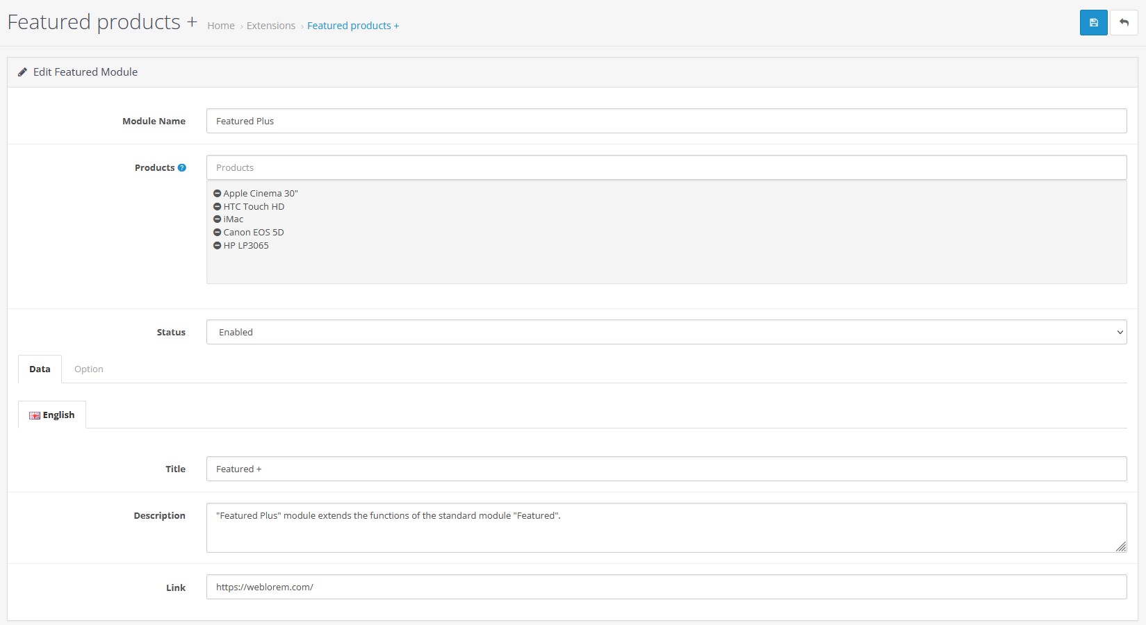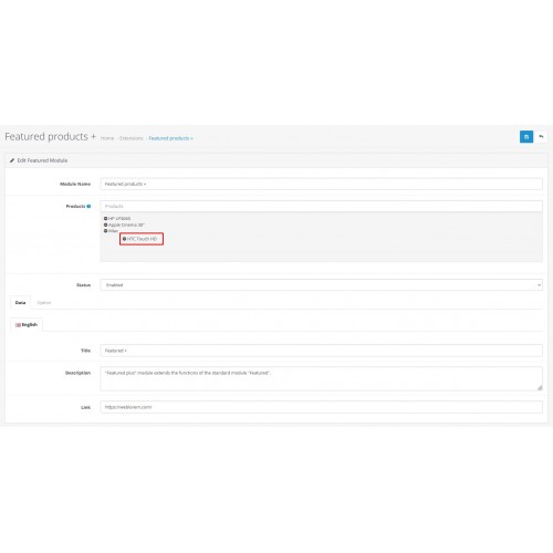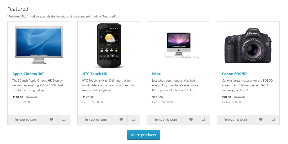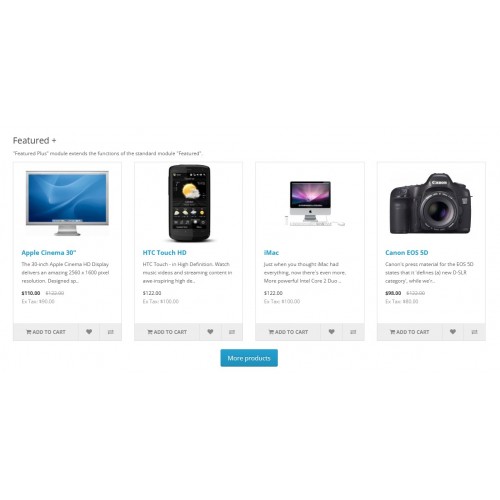 With this extension, you can create many blocks with featured products on your Open Cart website.
