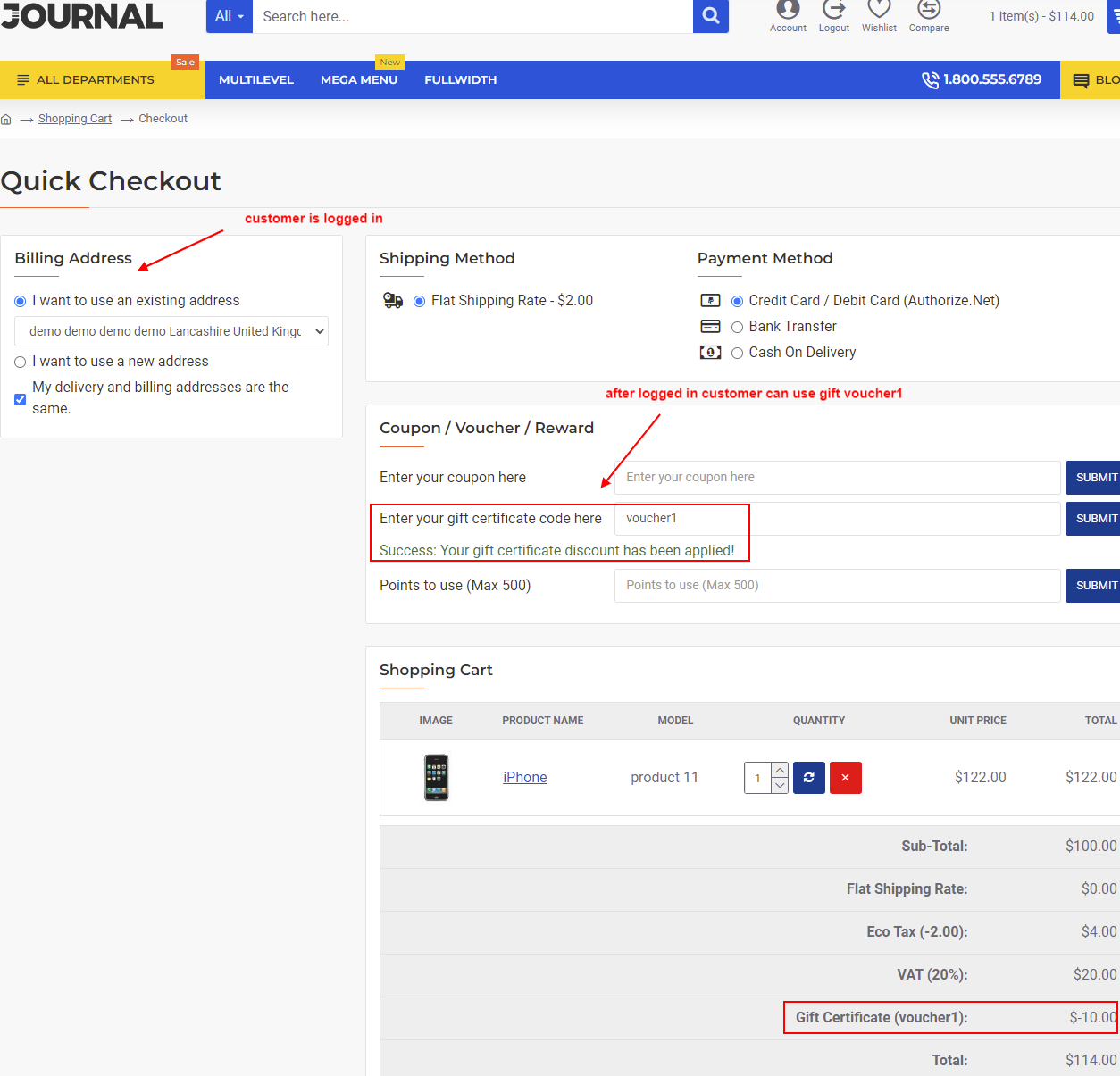 Login To Use Gift Voucher OpenCart 2.x + 3.x + 4.x