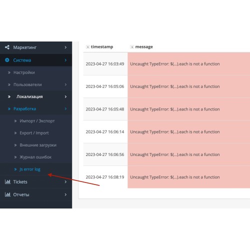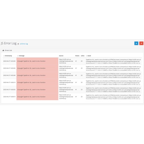 Js Error monitoring for Opencart 3.x