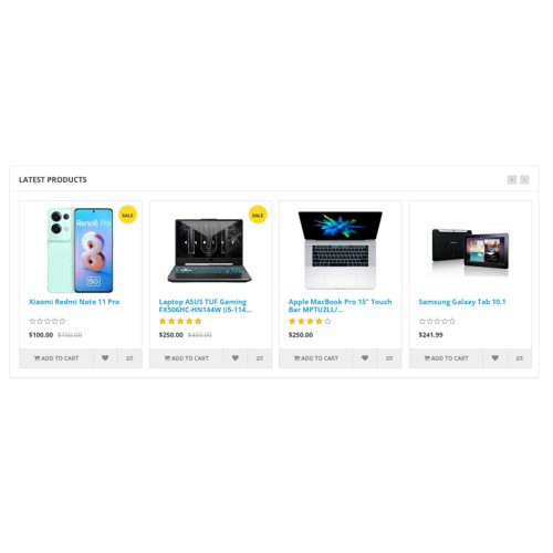 The latest carousel module is a powerful tool that allows you to display product of content in a dynamic and interactive manner. Instead of presenting your product in a static layout, the carousel enables you to create a visually stunning slideshow that users can navigate through with ease. This module not only enhances the aesthetics of your website but also improves user engagement and encourages them to explore more of your product. Module Latest Carousel compatible with OpenCart 3.x.x. and easy installation. Main features: