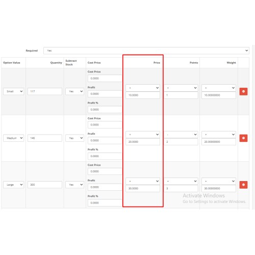 This extension allows you to preset prices in options. In default Opencart, if there are many options with the same price, then it is needed to add prices in each product specifically. With the extension, the admin can add a price for an option in the option form once, and at the same time, it will update the option prices in each product.
