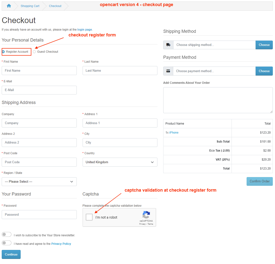 ✔ Validate forms at register, checkout (register & guest), product review, product return, and contact us pages