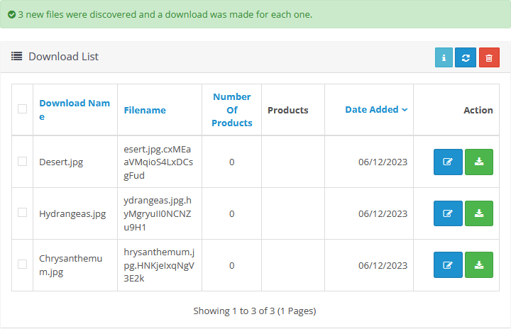 4. Product Name Visibility: You can conveniently view the names of the products to which each download is assigned. This helps you quickly identify the products associated with specific downloads.