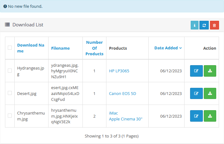 3. Product Association Tracking: Our extension provides valuable insights by displaying the number of products assigned to each download. This allows you to easily track and manage the association between downloads and products.