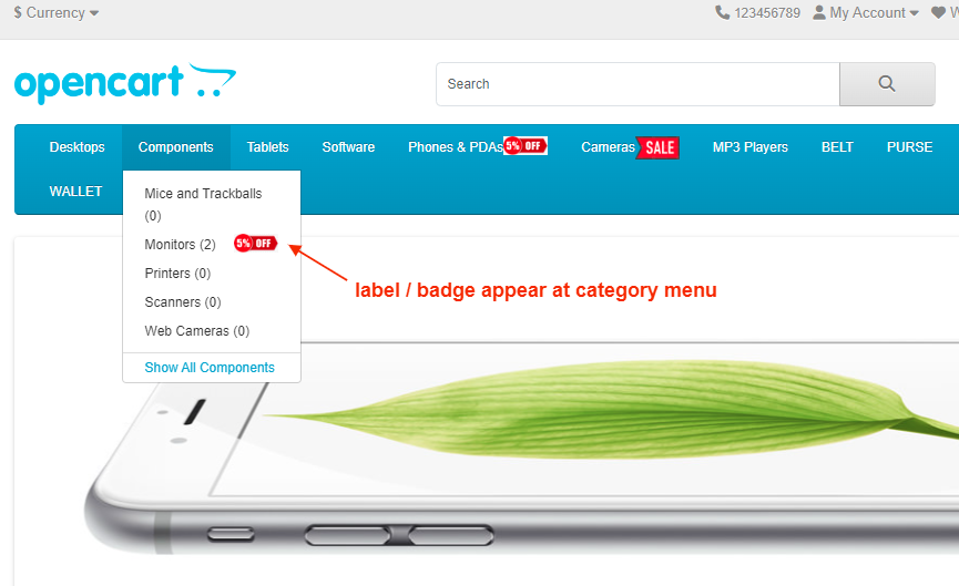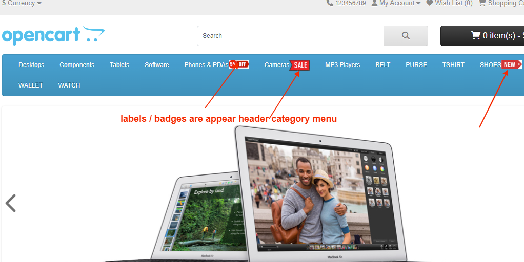 Category Menu Labels / Badges for OpenCart 2.x + 3.x + 4.x